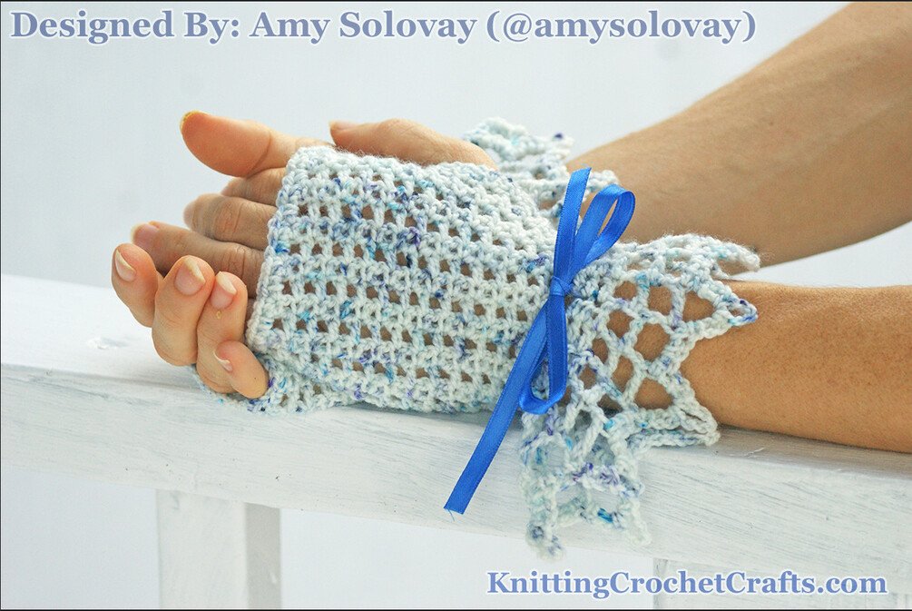 - An ultra-simple crochet mesh stitch that makes up most of the gloves;